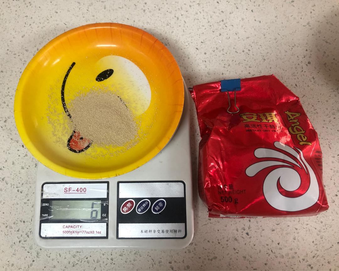准备6g低糖酵母,我用的安琪红色包装