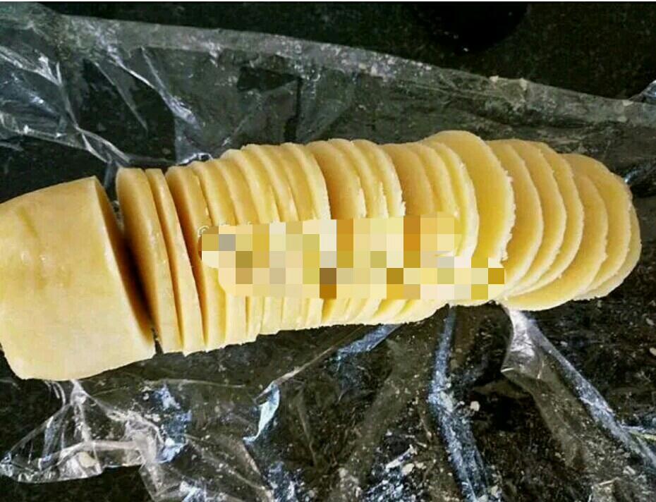 冷冻好的酥皮拿出来后切成约0.3厘米第薄片