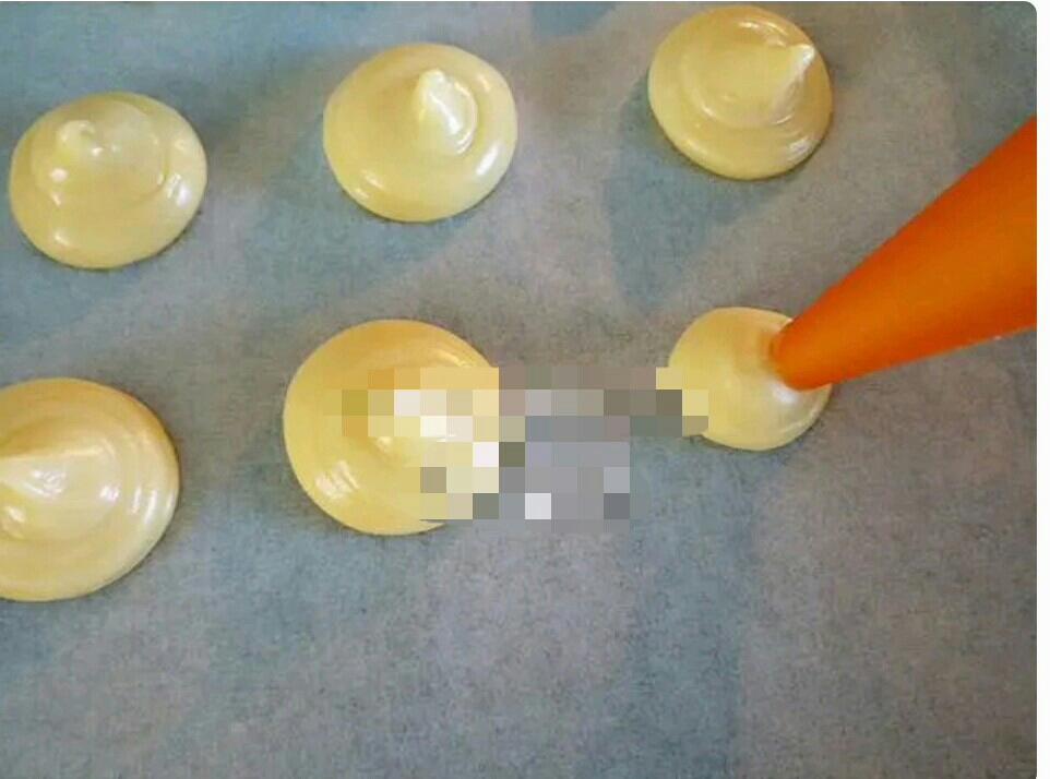 用裱花袋挤入烤盘中(前后左右空隙不要太小因为考的时候自己会膨胀)