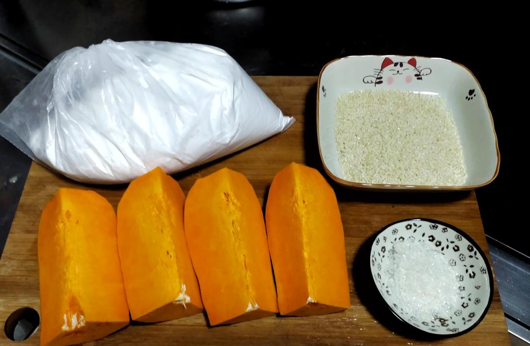 南瓜削皮,切成块,准备好材料;