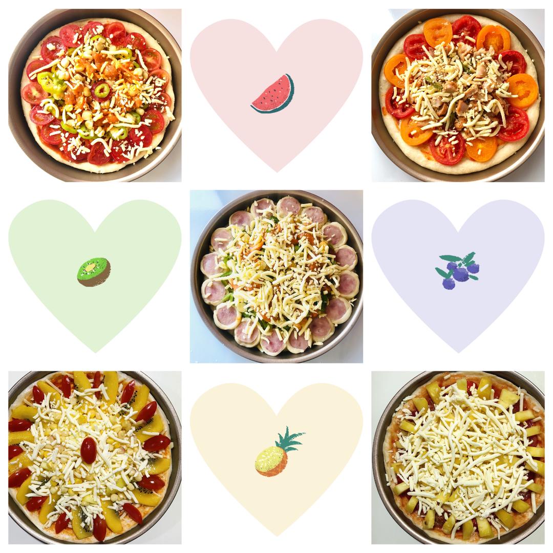 做了几次披萨,个人认为必须放圣女果,圣女果一定要放提前放烤箱烤3分钟左右烤干水分,不然后期披萨底会有很多水。纯肉披萨的话建议放点大辣椒,特别提味,水果披萨像香蕉火龙果就没有放的必要了,味道怪怪的,看个人喜好吧~