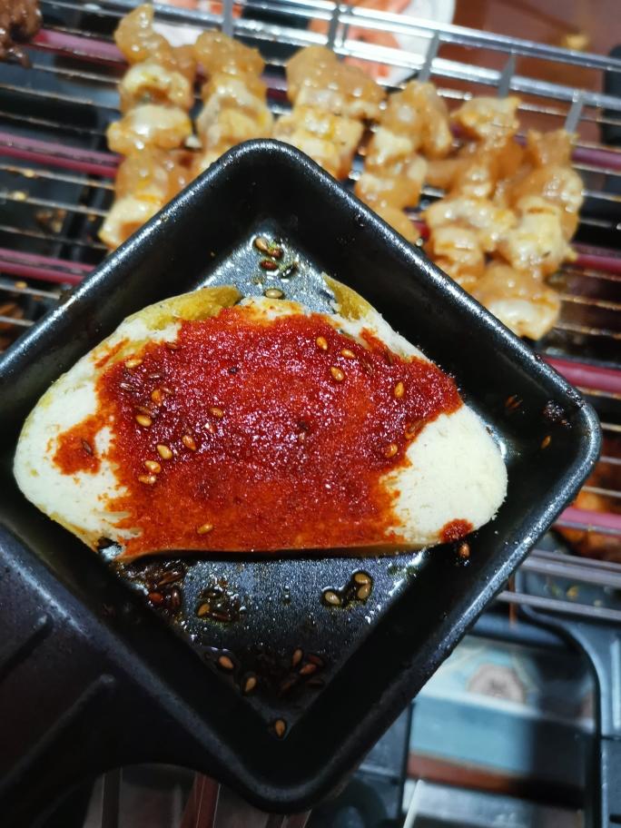 馒头面刷上酱料,烤的酥脆,好吃极了,自己在家烤串干净又好吃!