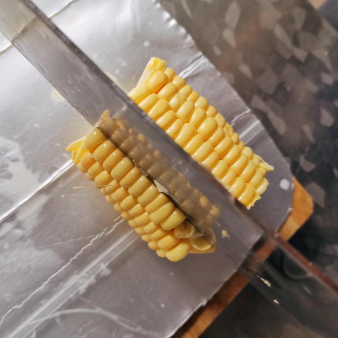 暗黑剥玉米粒方法: 先切掉一排玉米粒。