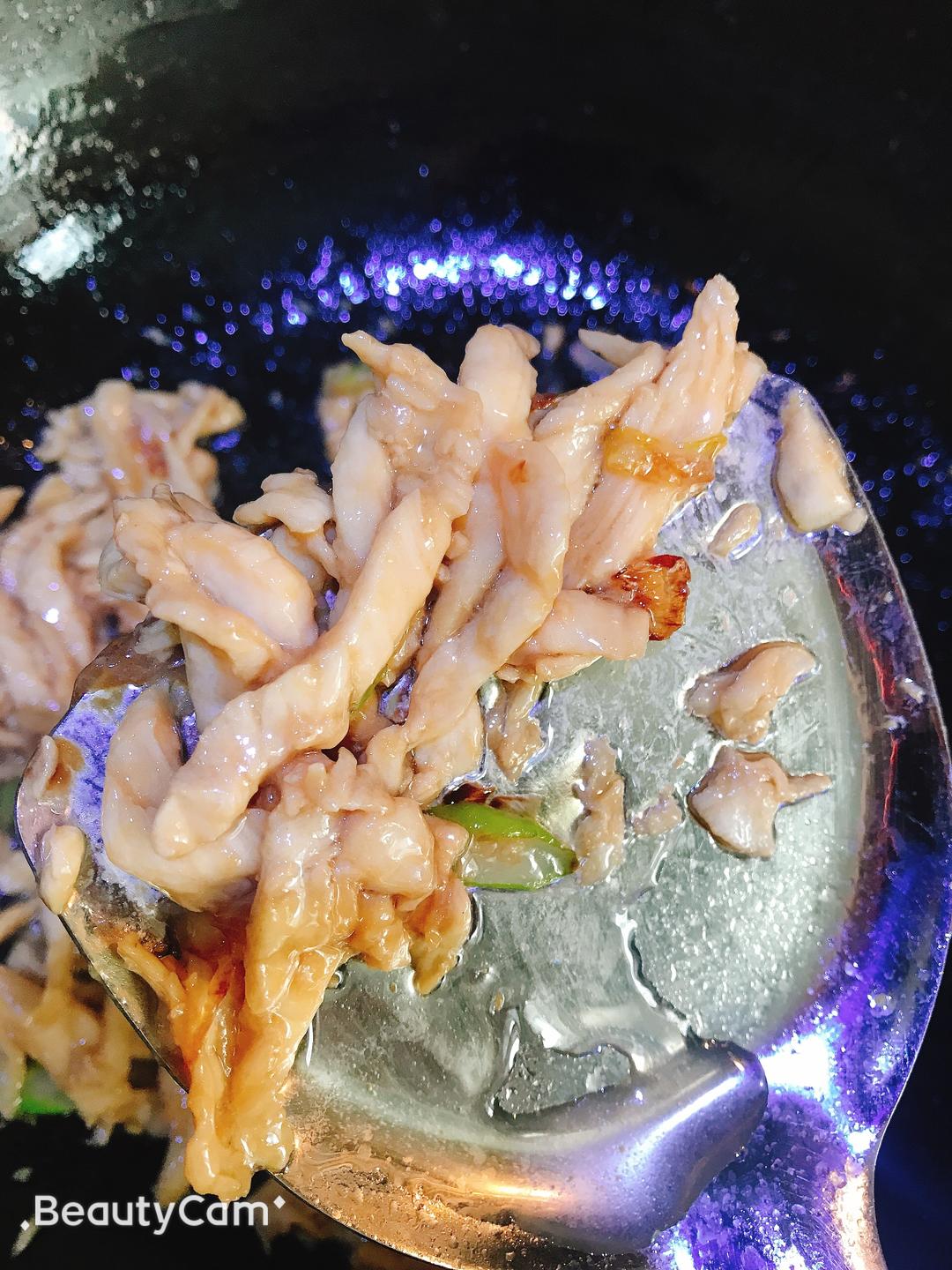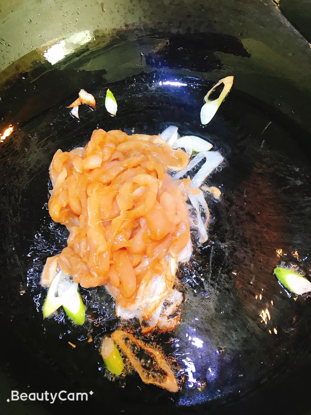 加入调好的鸡肉肉