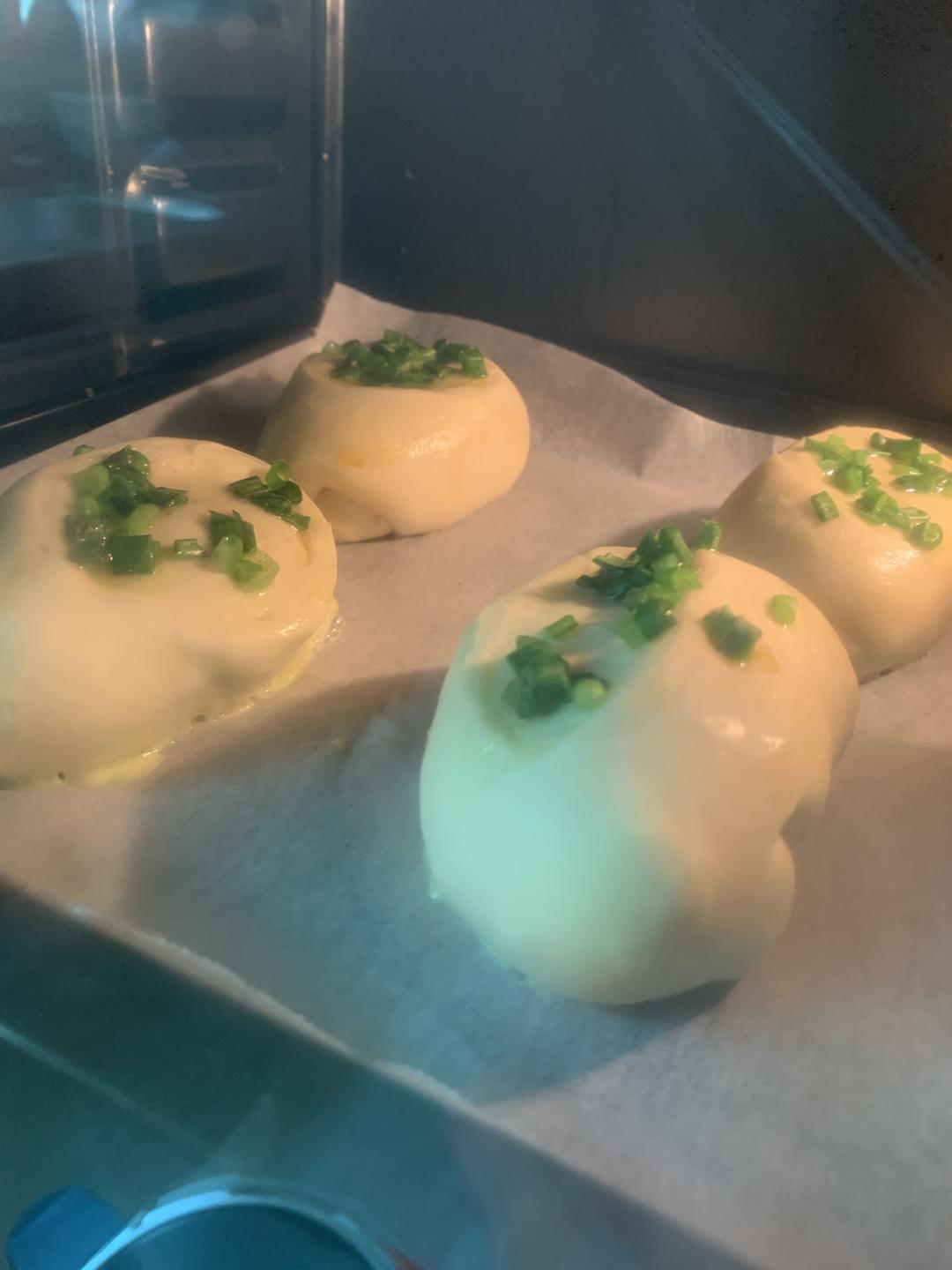 上火180度,下火150度,15分钟,叮!香葱包出炉!