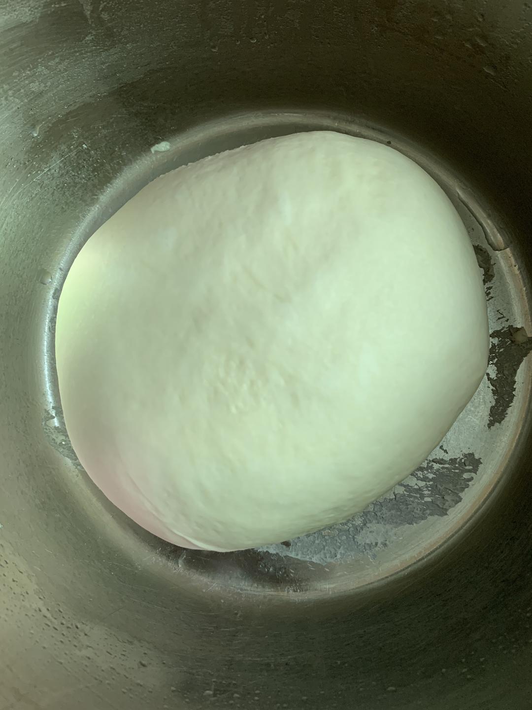 我是前天晚上9点左右揉了一个面团,第二天早上8点拿出来切了大概三分之一,分成4份!