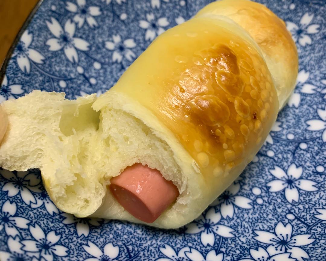 肉松包。肉松拌的沙拉酱太多,空洞比较大。但是有什么关系呢?好吃就行!