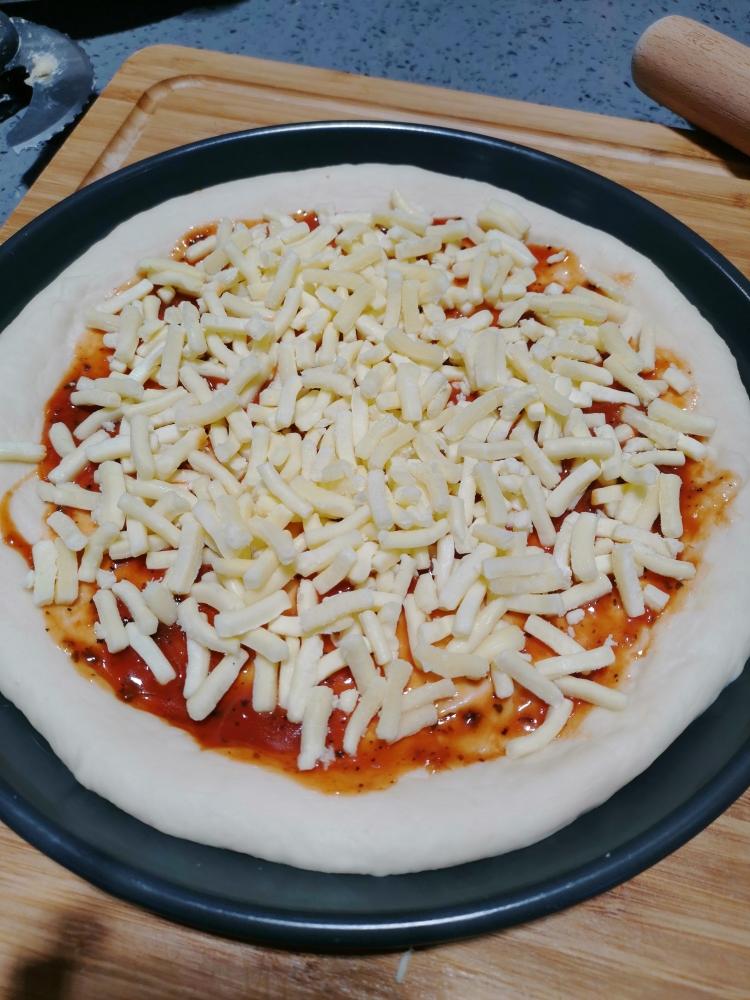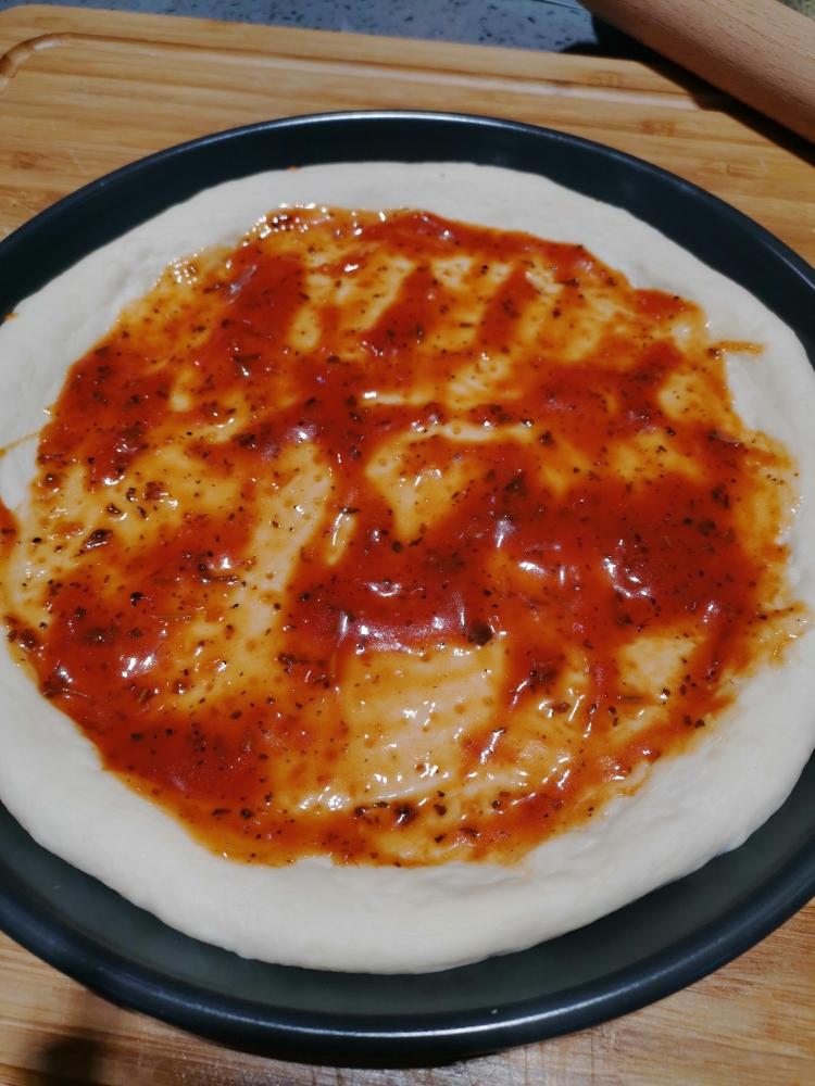 刷上披萨酱,披萨酱可以买也可以自己做。