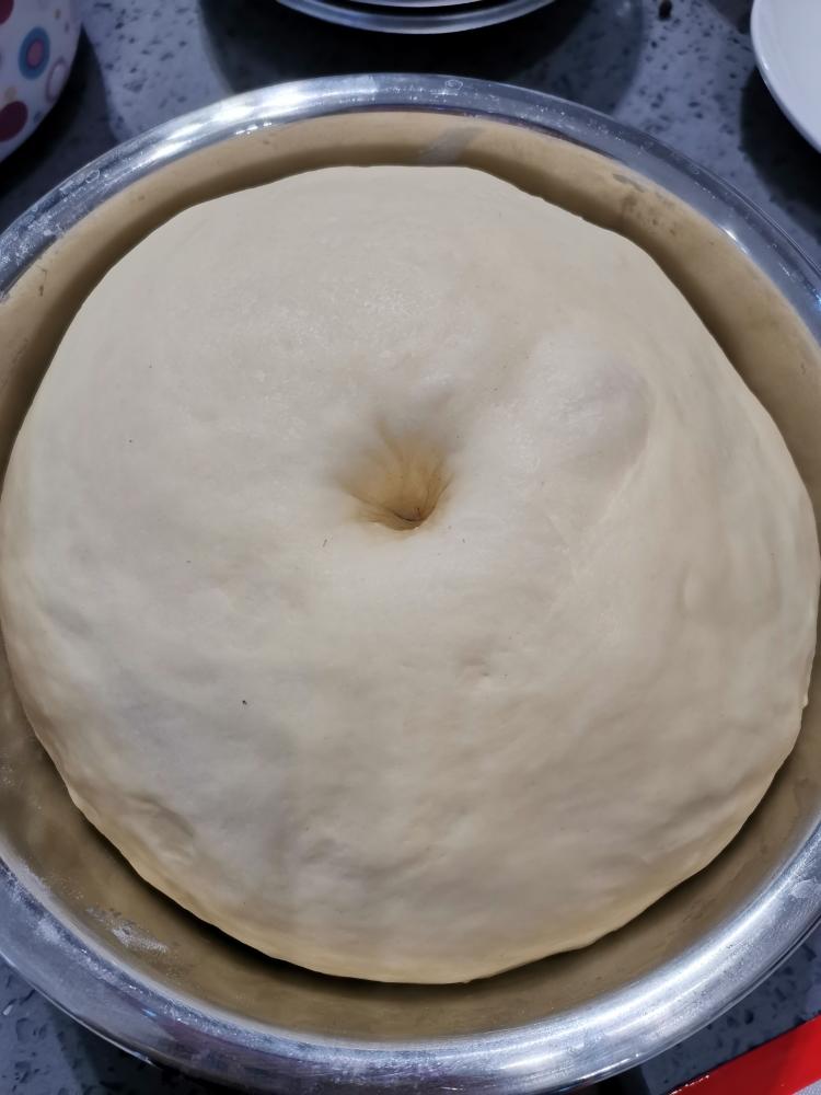 手动模式40度,1小时发酵,发成2倍大,这是发酵完成的状态,手指压下去不回弹。