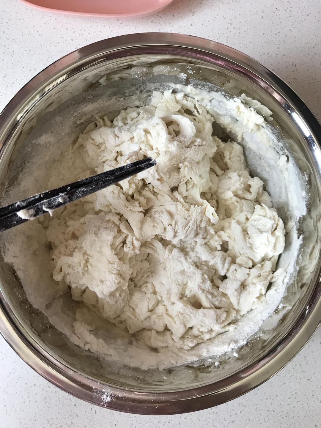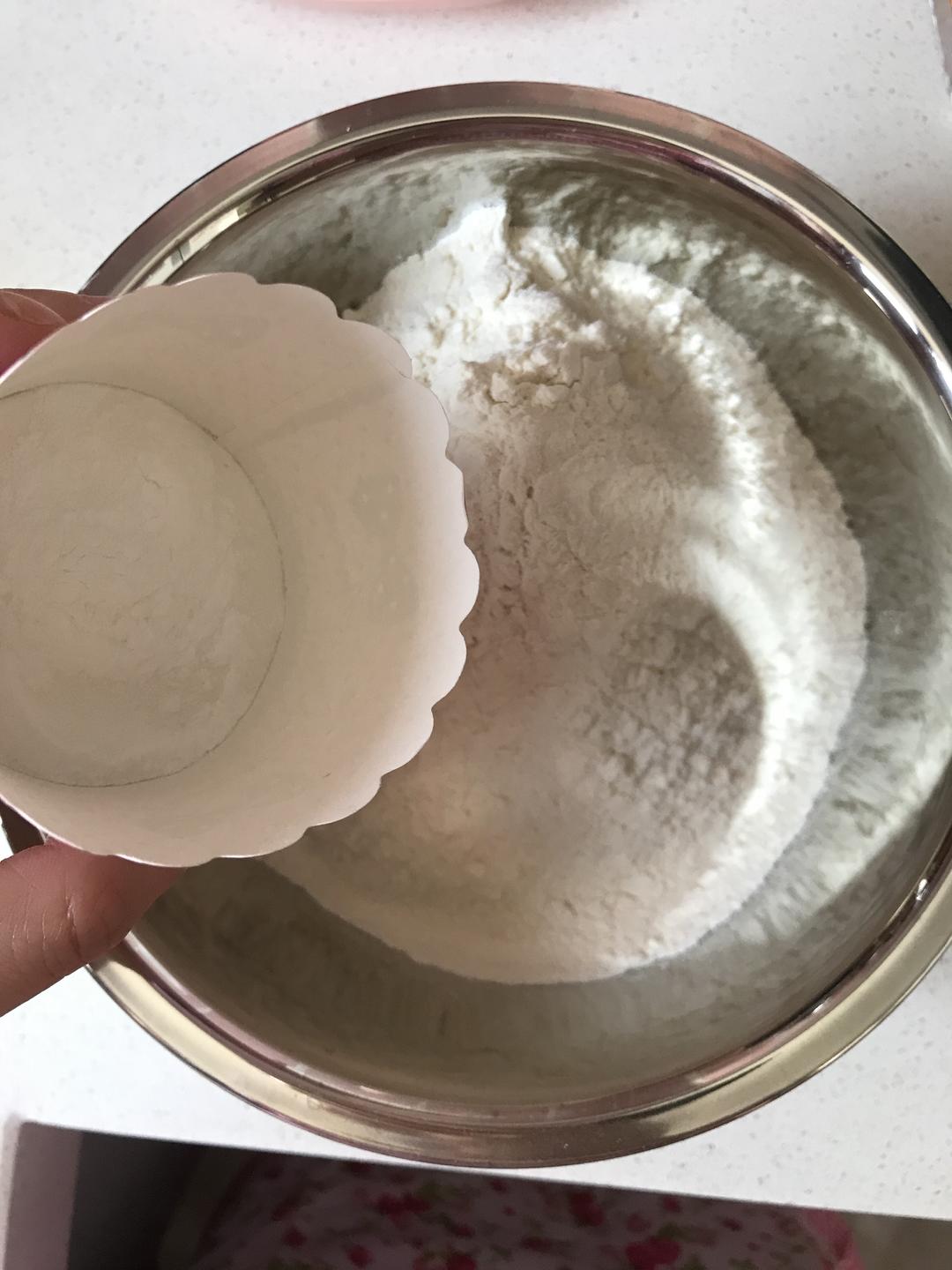 醒发的差不多了。准备开始做起来。最小的容器装的是盐和椒盐粉的混合物。