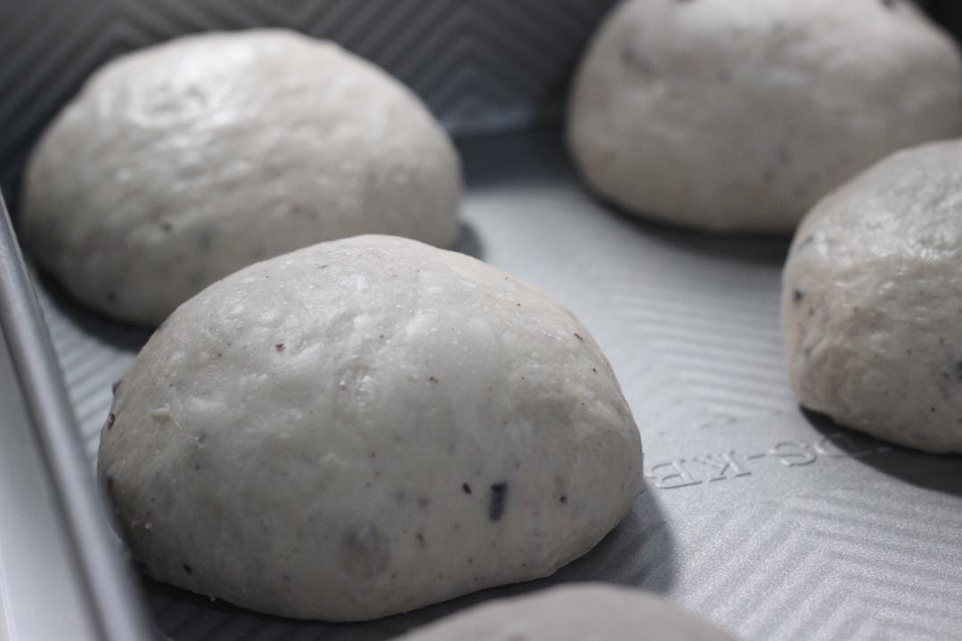 放入烤盘摆放整齐,放入发酵箱37度,湿度80,发酵至面团到两倍大。(大概发酵40-50分钟)烤箱上下火180度预热后,放置中间层烤30-35分钟。(烘烤温度记得按自家烤箱的脾气安排哦)