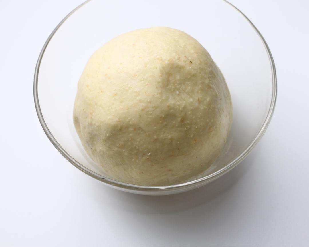 将面团整理好放入碗中,置于28度左右的湿润环境中一次发酵,时间约为1h。
