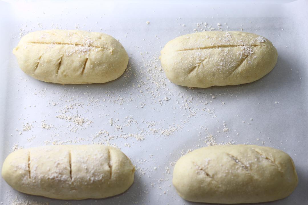 预热烤箱前,取出发酵完成的面团,撒上全麦粉或燕麦粉,割出自己喜欢的花纹。