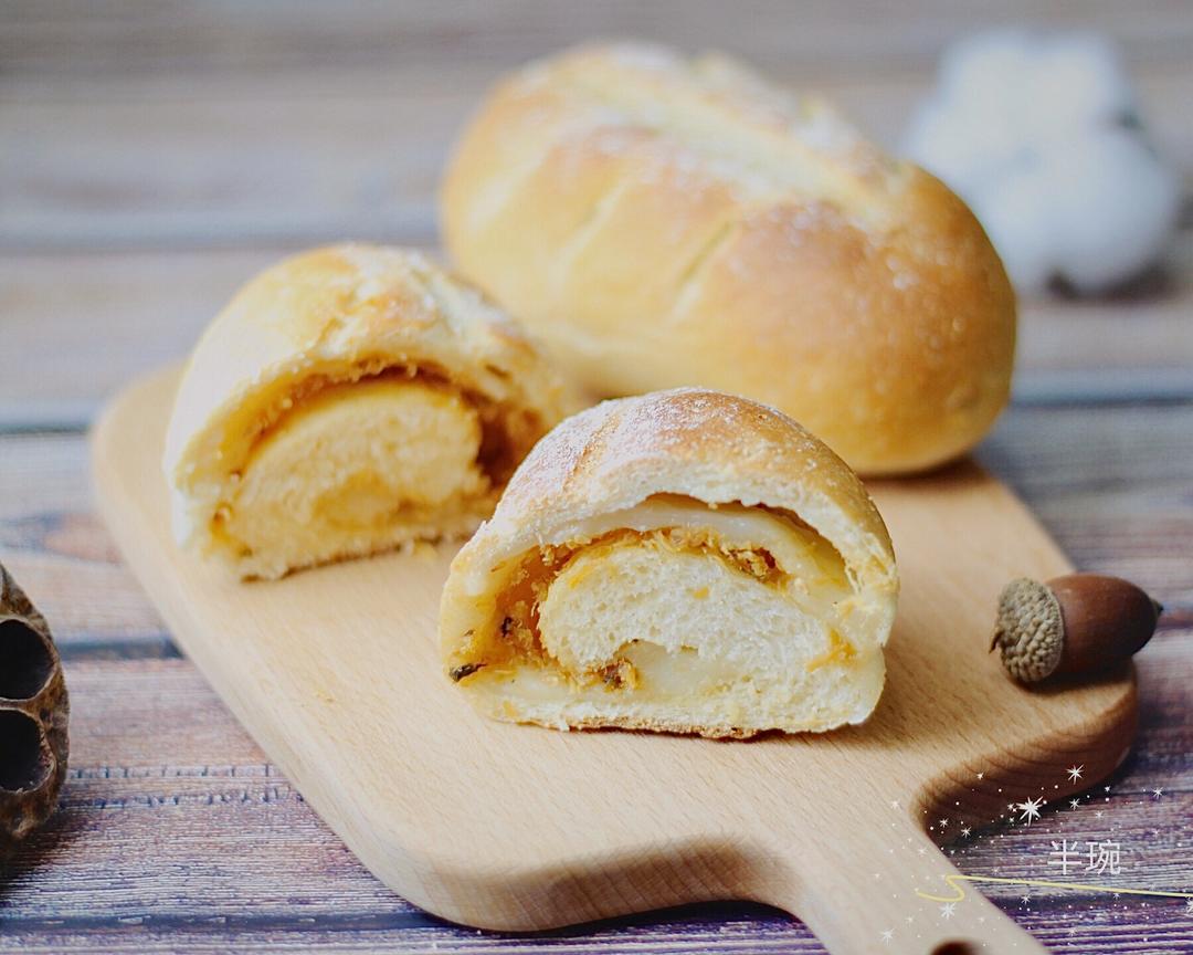 松弛期间处理肉松,将40g肉松和一大勺沙拉酱混合均匀。