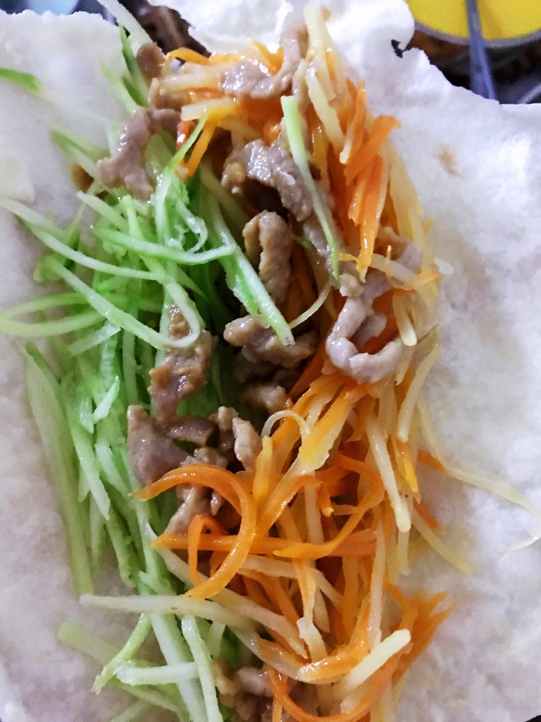 青瓜我不炒,有不喜欢吃生青瓜也可以炒,馅做好放一边,吃的时候包在面皮上卷起来吃。