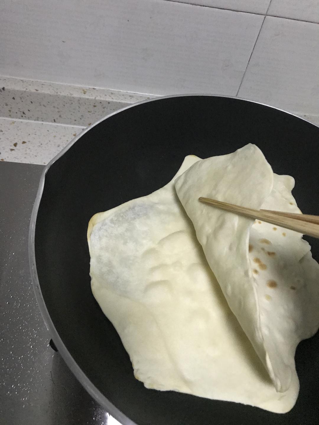 面皮很重要,所以煎面饼的时候要盖上盖子,煎好也要保湿。