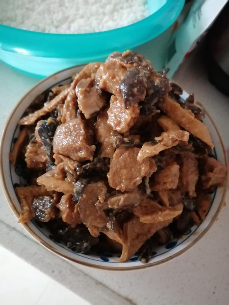 倒入梅干菜,盖上盖子焖一下下