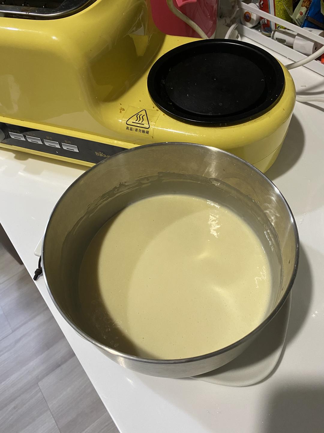 鸡蛋、糖和水搅拌均匀,倒入粉类拌匀后,待发20分钟。