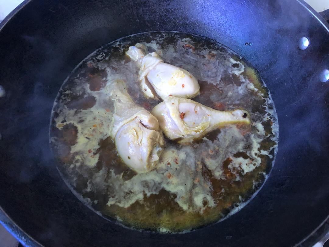 然后在煮鸡腿。(我小锅比较小,大的锅可以一起煮。鸡腿煮6-7分钟。