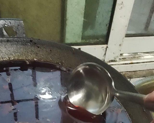 把盆里沥出的红油放入锅里熬,熬到没有水声,米粉红油就做好了! 剩下锅里的汤可以拿来煮麻辣烫,或者火锅之类的