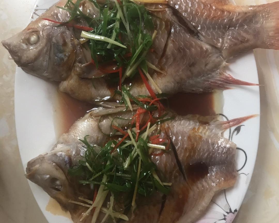 烧油的话锅不能有水,一般的话清蒸鱼都可以用这方法来做。配料的话,要根据鱼的大小,还有个人的口味去调整,喜欢吃辣的吃咸的都可以适量添加,蒸鱼的时间也要根据鱼的大小去调整,一般鱼皮皱了,鱼眼突出来鱼就熟了,这鱼是在冰箱放了一夜就不突出来了,再不确定可以拿个筷子往鱼身上肉最厚的地方扎进去,没有血水就是熟了。