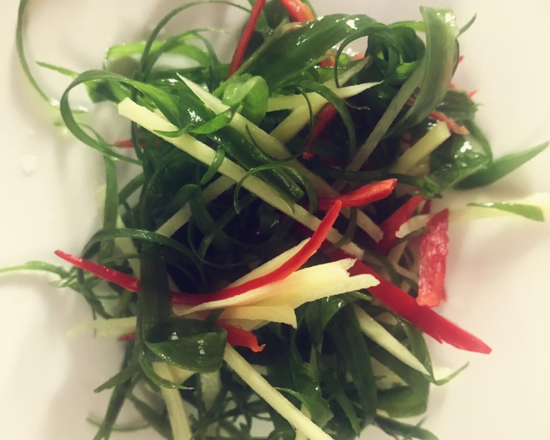 在蒸鱼期间,姜,葱,红辣椒切丝,放水中洗一下,混在一起,捞出来即可