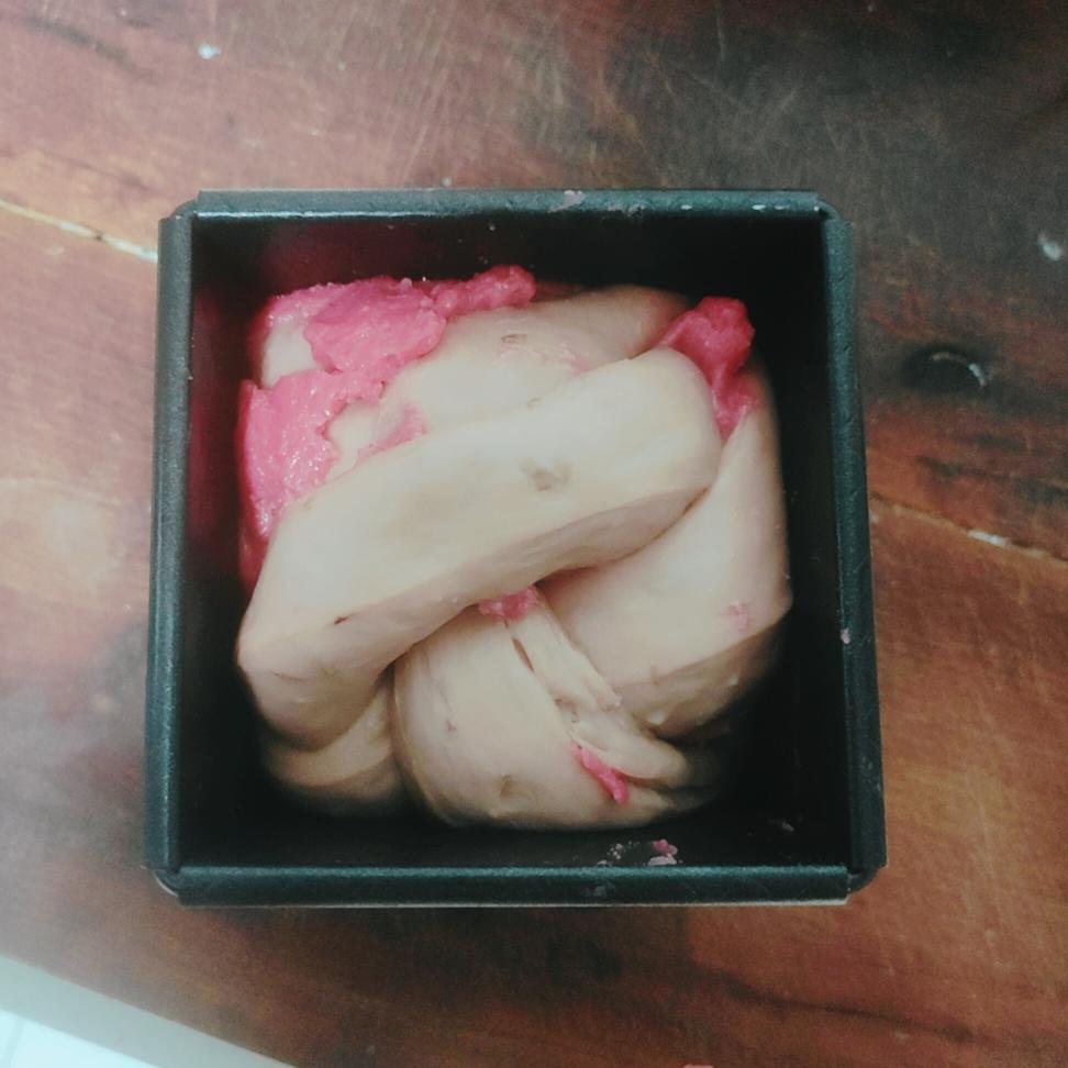放进吐司盒 二次发酵 (有点着急 编的有点丑 其实也没什么所谓?)