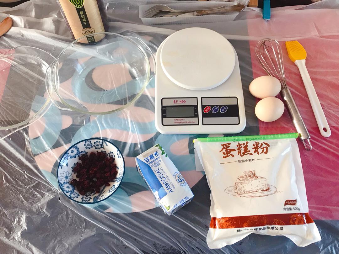 1:把鸡蛋、低筋面粉、酸奶搅拌均匀至无颗粒状态。倒入容器,可以在容器底部撒上蔓越莓干,再把蛋糕糊倒一半进去,再撒上蔓越莓干,再倒要蛋糕糊(这样整个蛋糕都遍布着蔓越莓干,超喜欢的❗️)