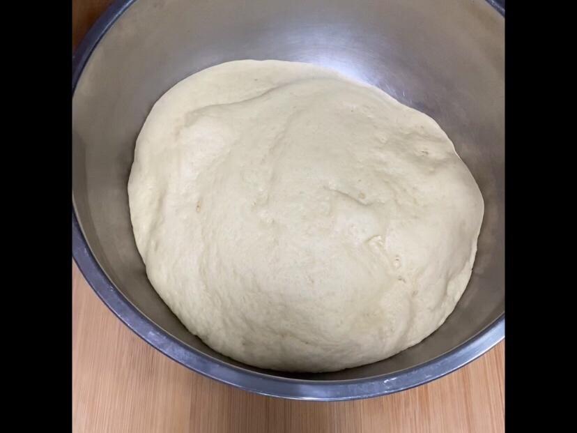 室温发酵1小时,发酵后的面团是发酵前的两倍大。