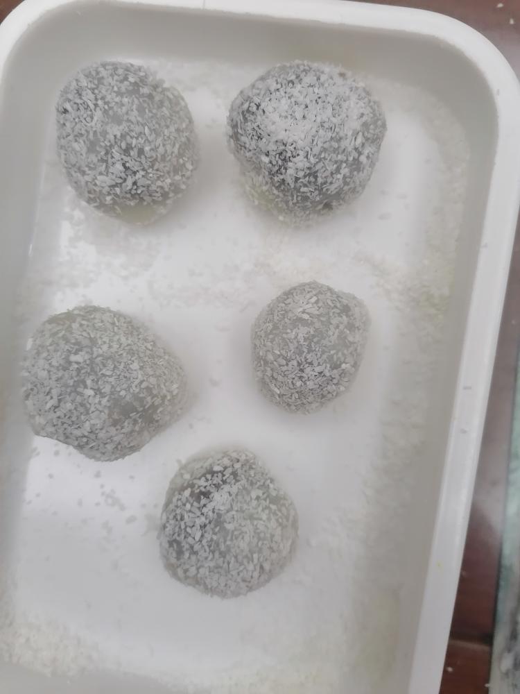 大儿子不喜欢椰蓉,所以有的没裹。不过边做边吃。到拍照的时候没几个了。