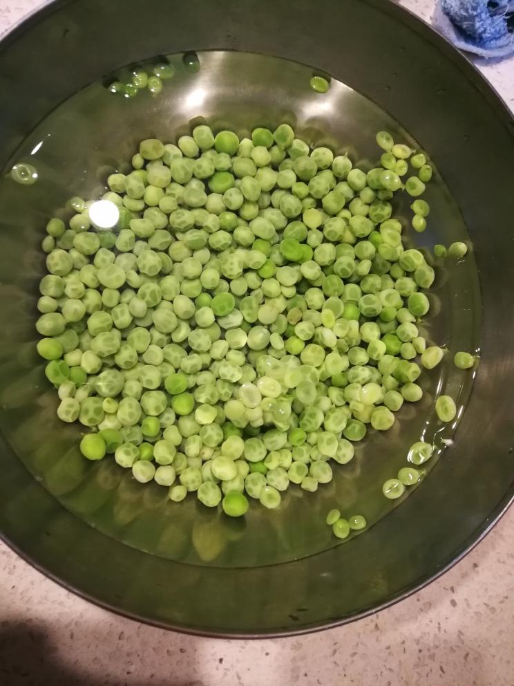 焯过水的豌豆过凉水。