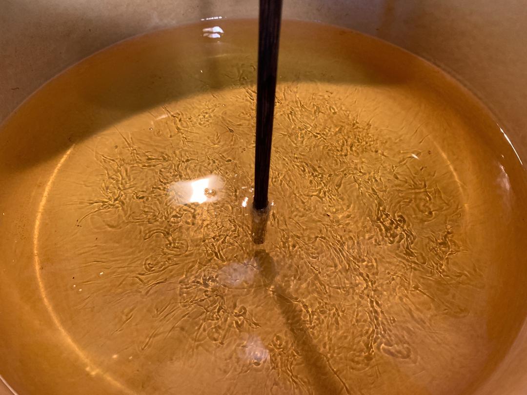 小火热油,筷子放进去会有小泡就是油热了。
