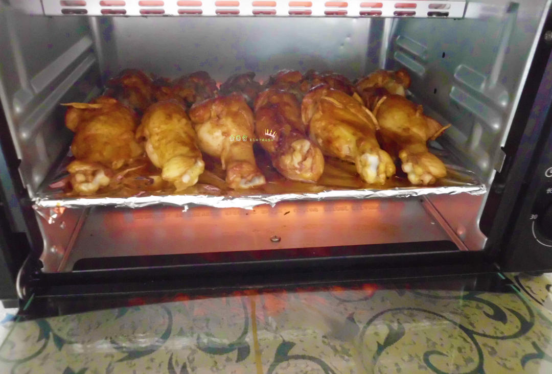 烤箱无需预热,直接放入鸡翅根上下火230度,时间25分钟。