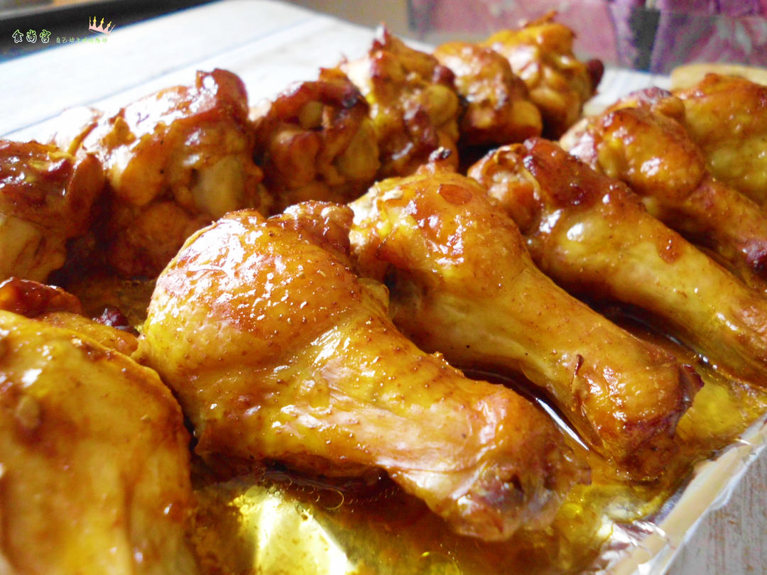 25分钟后,在鸡翅根上刷一层黑胡椒腌料汁