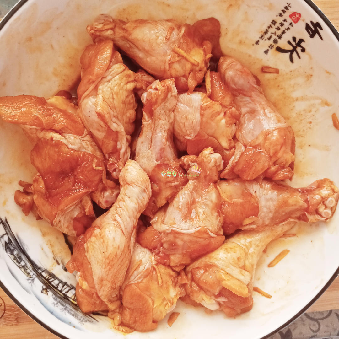 以上所有调料直接倒入鸡翅根内抓匀盖上保鲜膜冷藏静止2-3小时