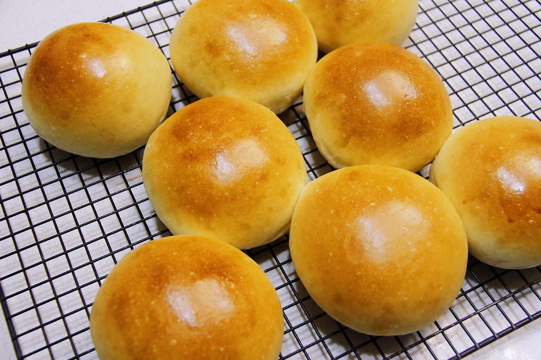 烘烤结束,面包立即出炉,震一下后脱出烤盘放网架晾凉。