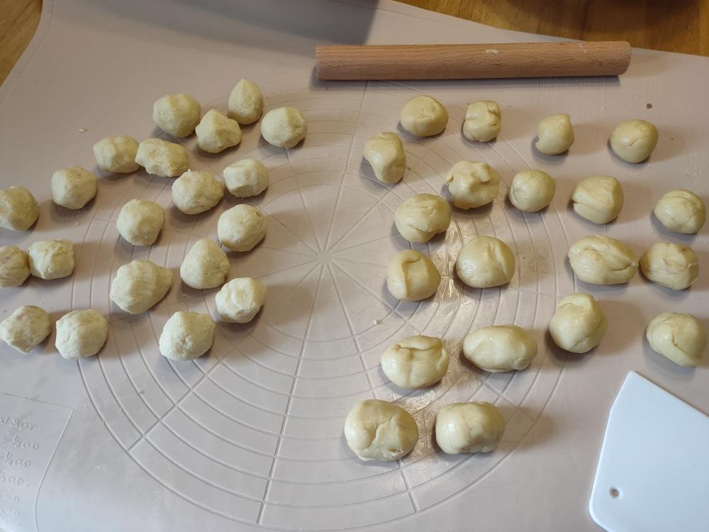 从冰箱把水油皮和油酥拿出来,分别各分成20份