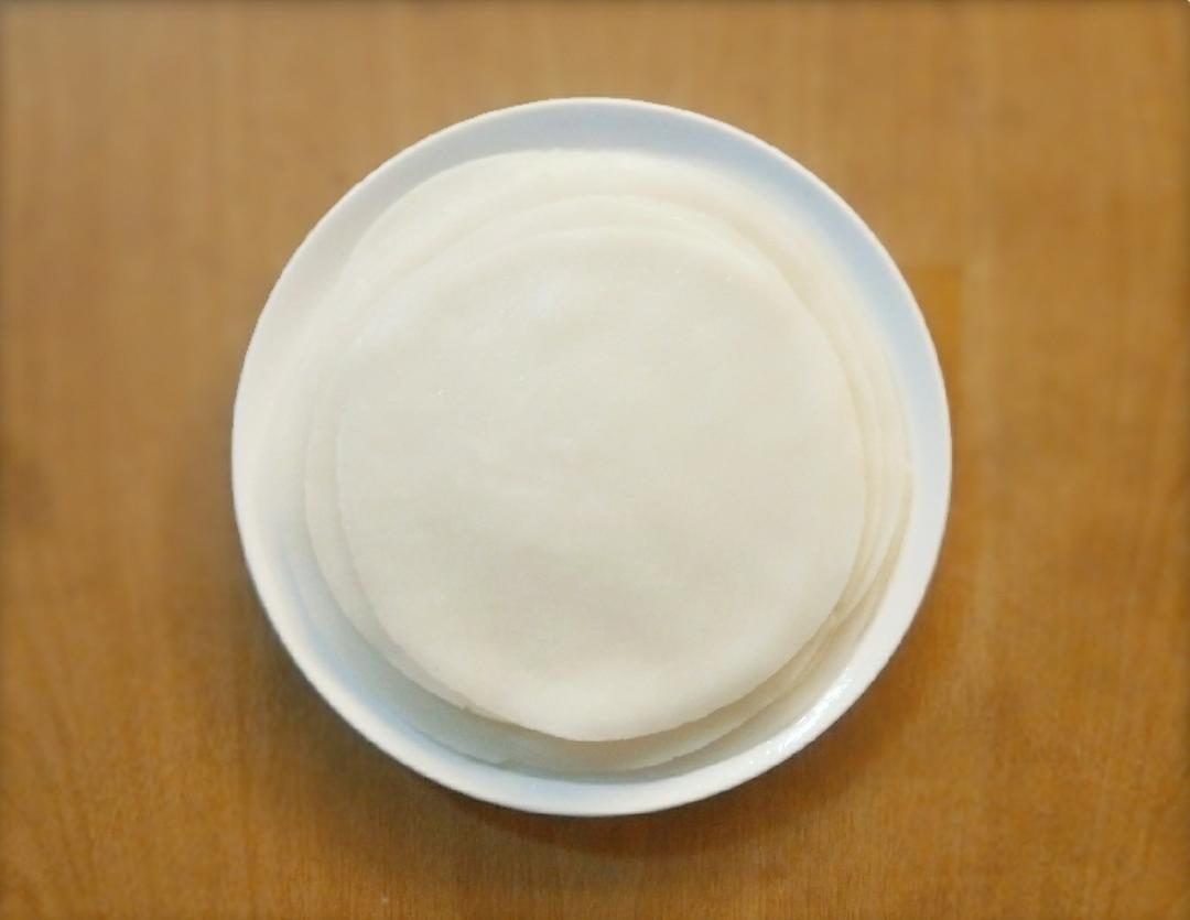 待凉皮彻底冷却后从盘里揭下,丝滑Q弹哦~
