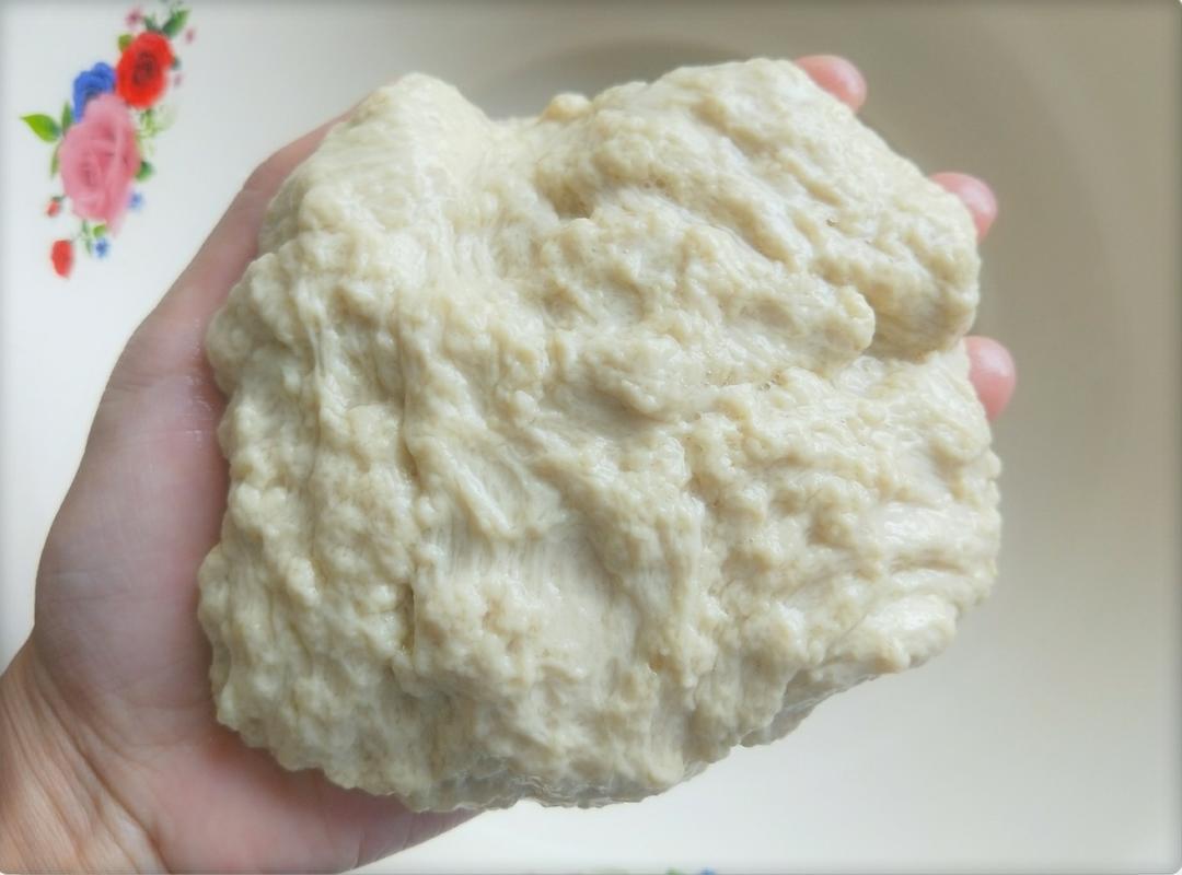 将粉浆彻底洗出后,剩下这一块像口香糖一样富有弹性的淡褐色面团就是传说中的面筋了。