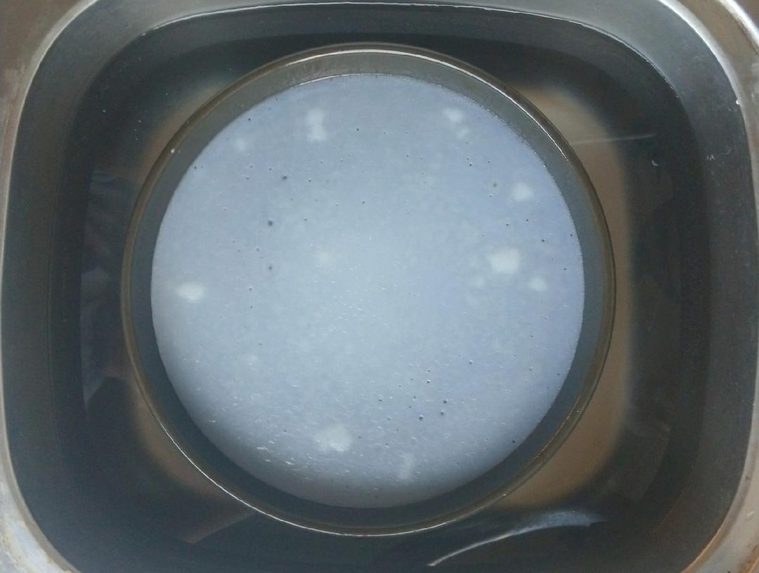六个小时后面浆沉淀,顶部会有一层透明液体,小心倒掉上层的透明液体。