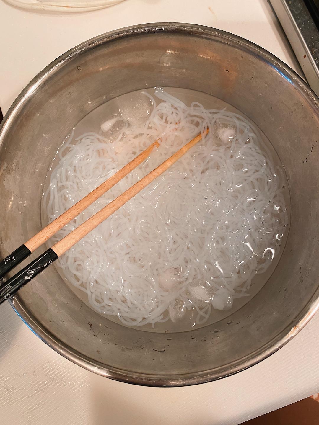 煮完的魔芋丝立马放到冰水里降温。