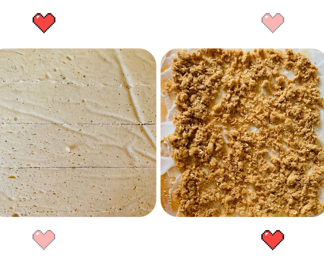 烤好啦!快速连同油纸放在架子上,约等一分钟,面饼不烫手了,拿另一张油纸,将面饼倒扣,脱膜。