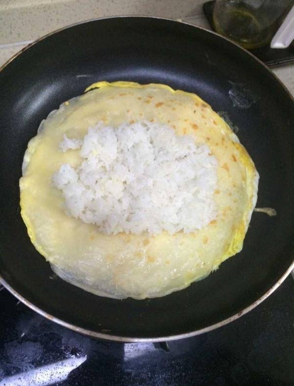 放入适量糯米在饼的中间,不要放太多,以免等会面饼包不下。