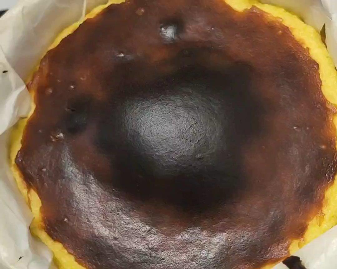 第二天好次的巴斯克式芝士蛋糕就出来啦。 中间会塌陷是正常的。 焦焦的香味加浓浓的芝士味。 赞哟