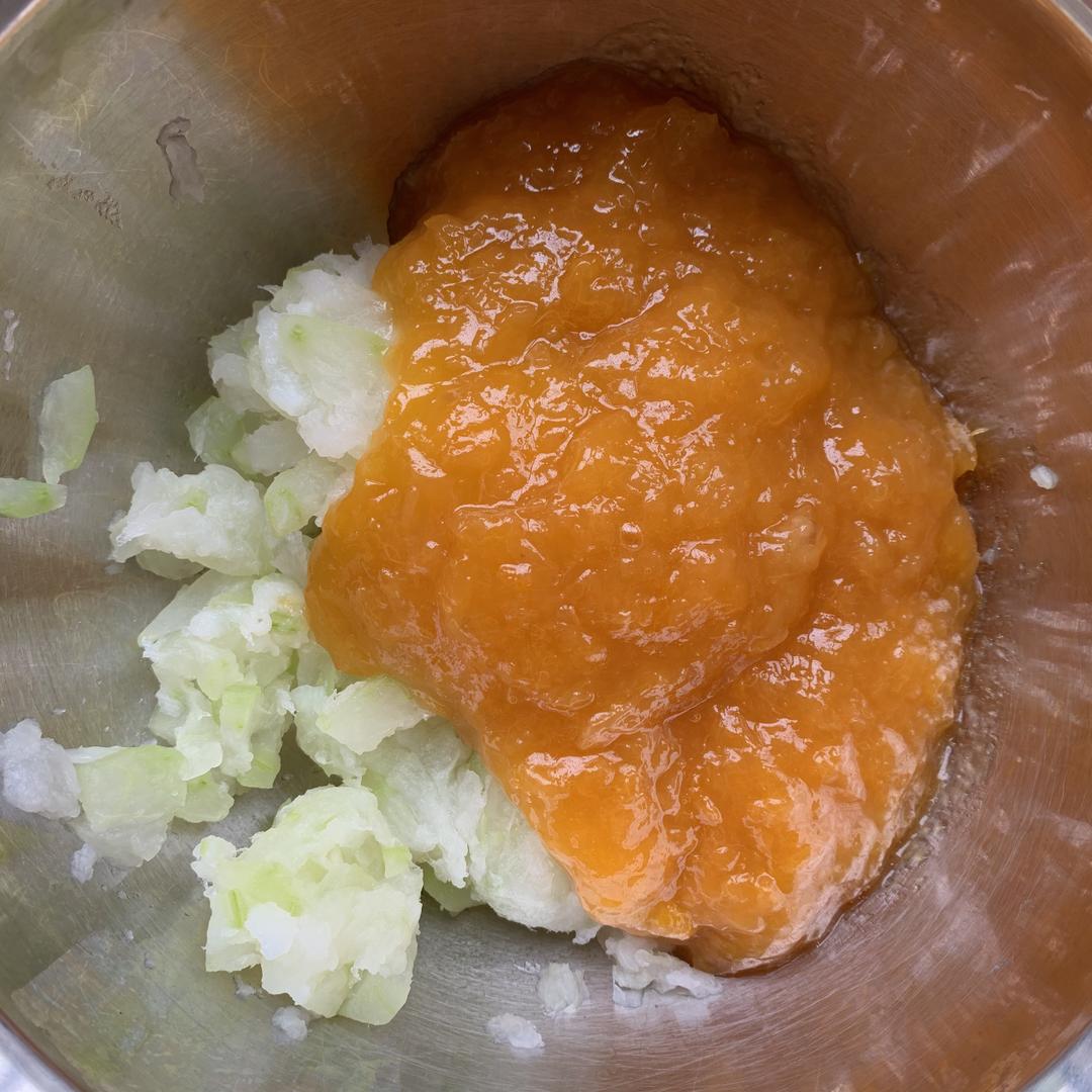 我用了冬瓜茸与果酱约1:1.1的比例,可以根据自己的喜好调整这个比例,理论上这里添加任何果酱都可以。
