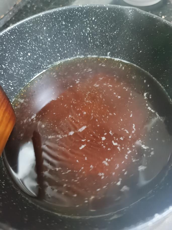 炒焦糖一定要控制火侯,如果嫌麻烦,就用等量红糖代替,颜色也很好看