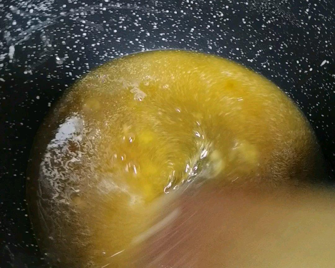不停搅拌直至炒到上色,一定不能炒过头,糖会苦。一般炒到有泡泡出来就是过头了