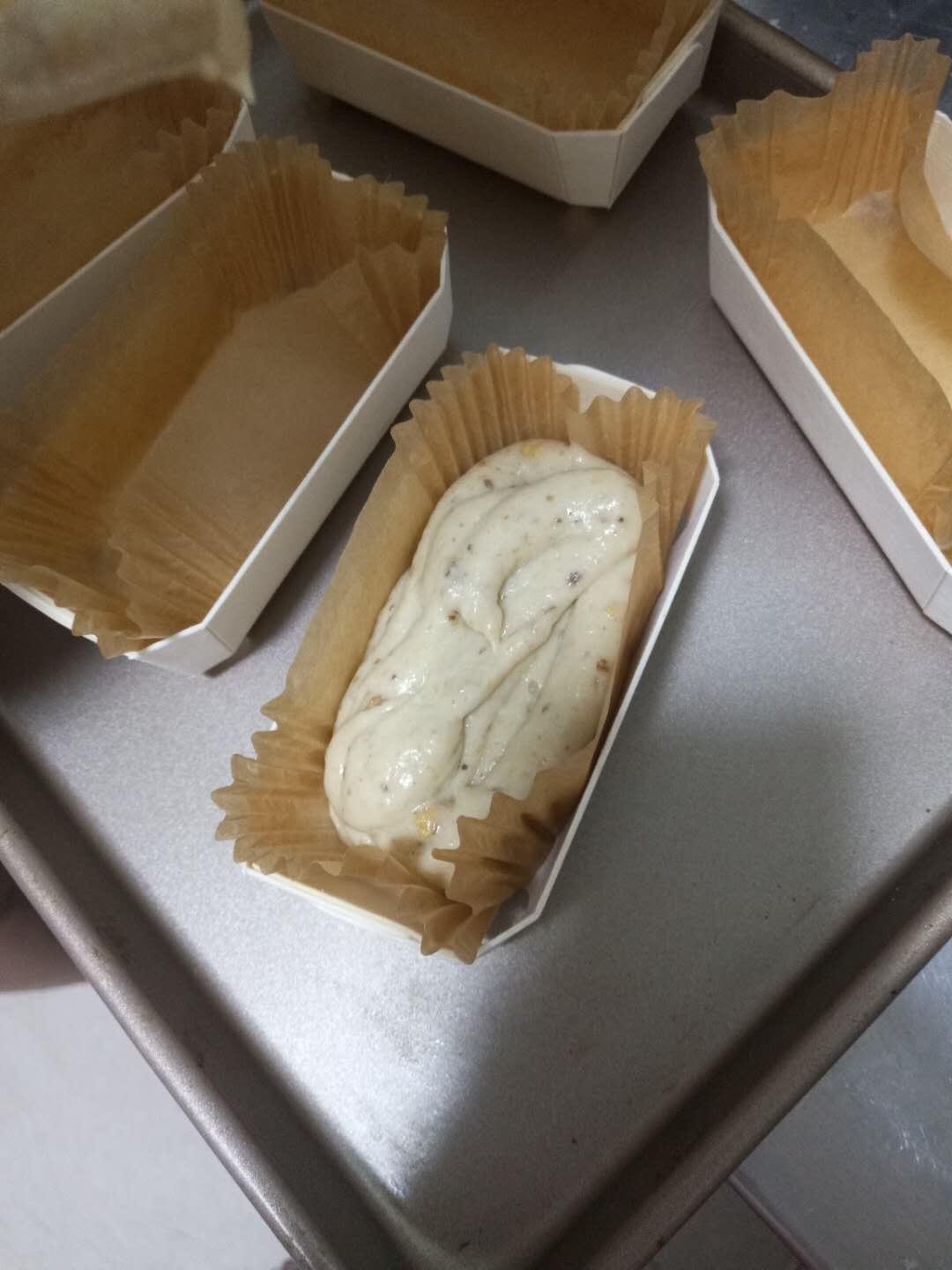 蛋糕糊用裱花袋挤入模具,3/4满即可。