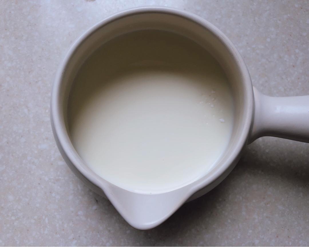 燕麦馅材料A牛奶和玉米淀粉称在奶锅中不断搅拌煮沸