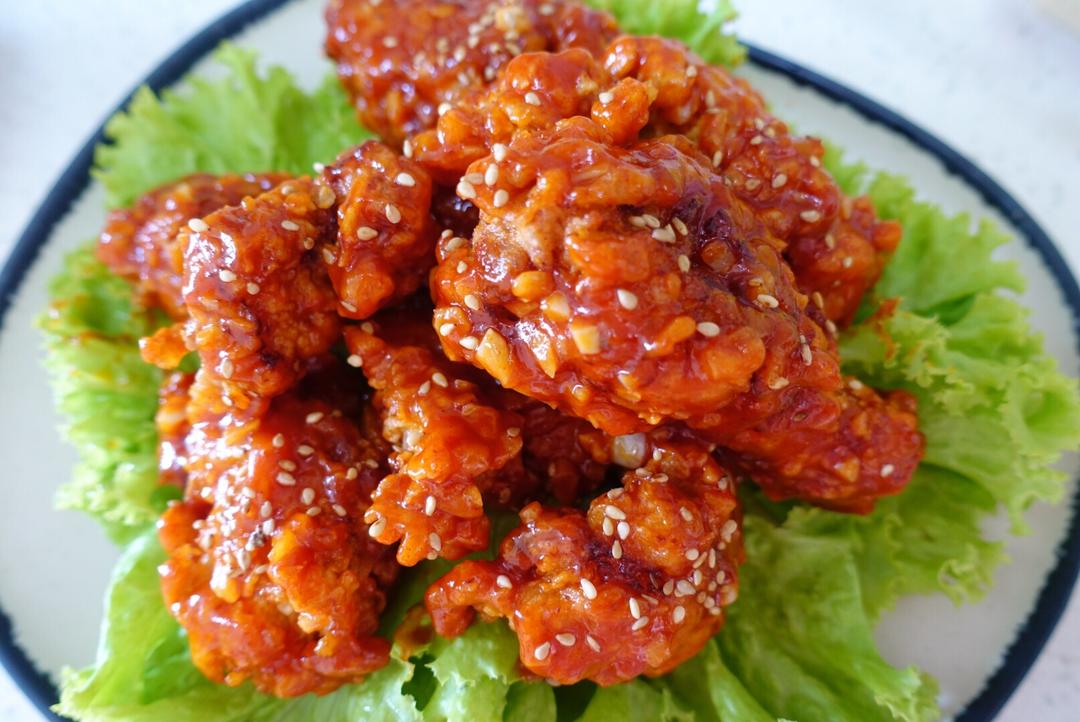 然后倒进挑好的汁,一勺韩式辣椒,一勺半番茄酱,一大勺蜂蜜,一大勺苹果醋(如果不想吃酸的,可以不加)五大少水(水多一点没关系)如果鸡翅比较多,这些材料需要加倍。